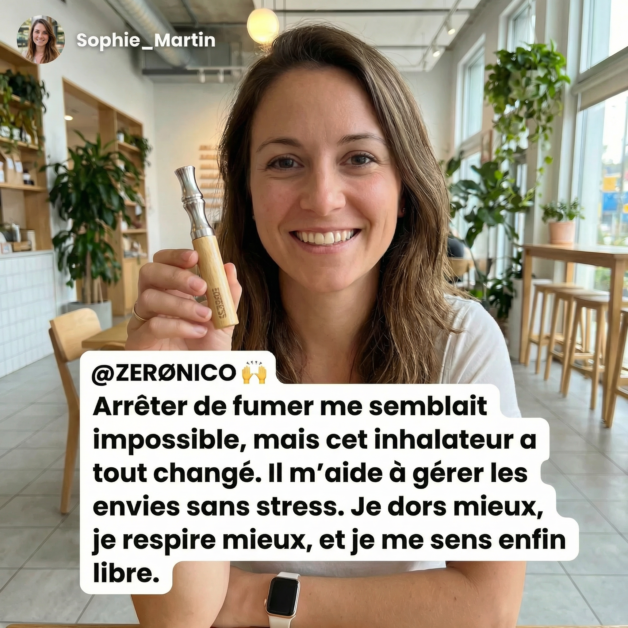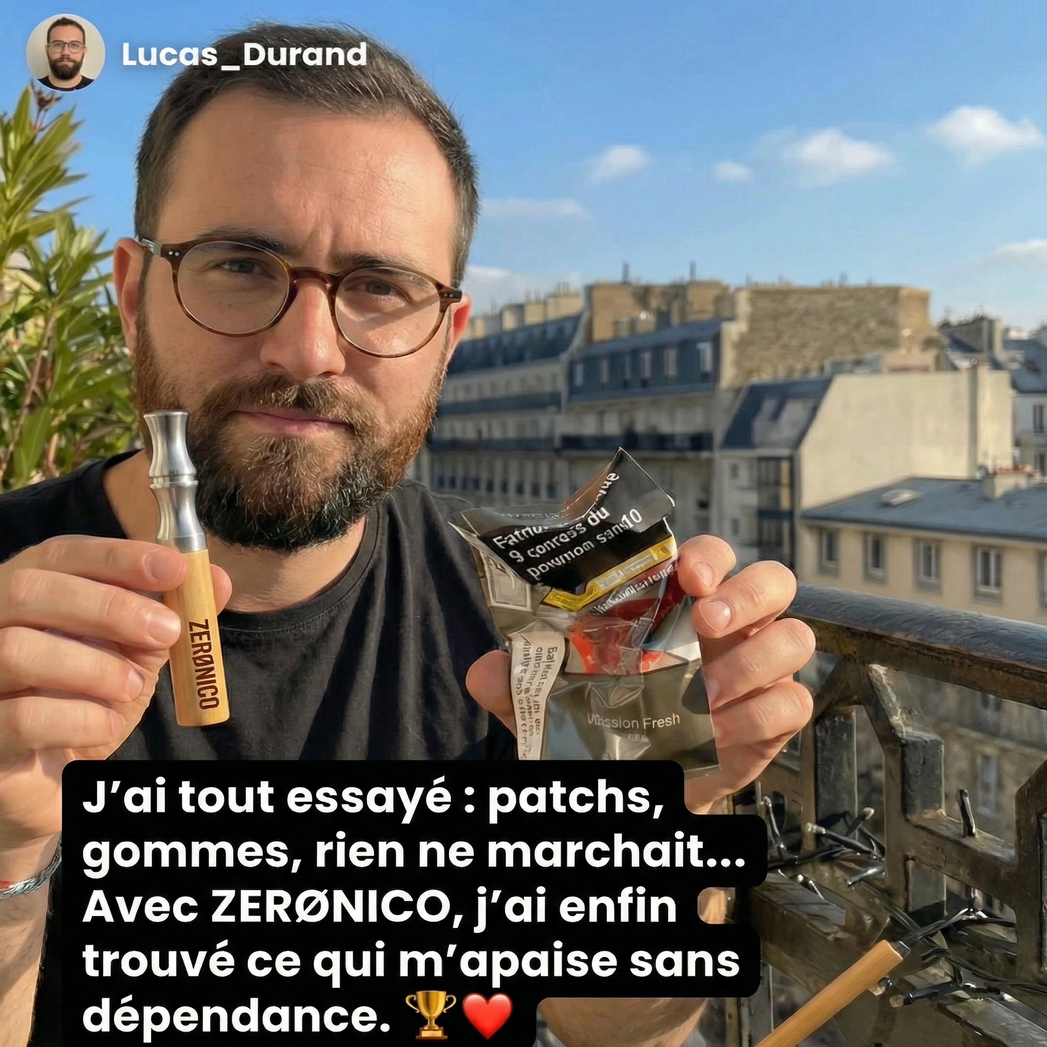 « Cette découverte scientifique reproduit le geste et la sensation de fumer, soulageant cravings, stress et anxiété, tout en stoppant la dépendance. En tant que médecin, je peux attester de son efficacité et de son potentiel révolutionnaire pour tous ceux qui souhaitent arrêter de fumer. »